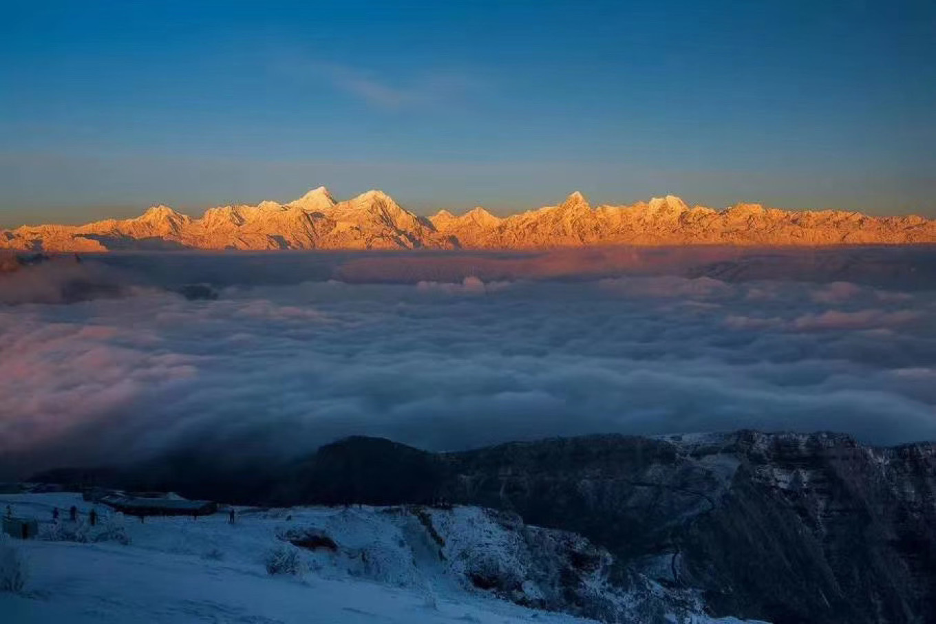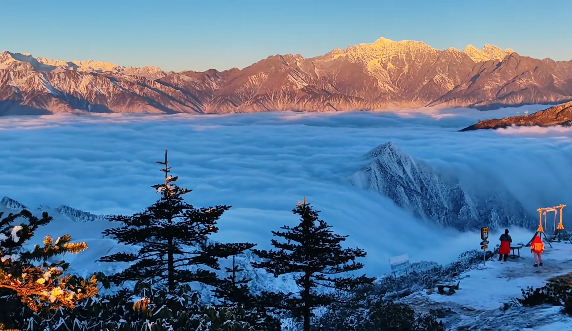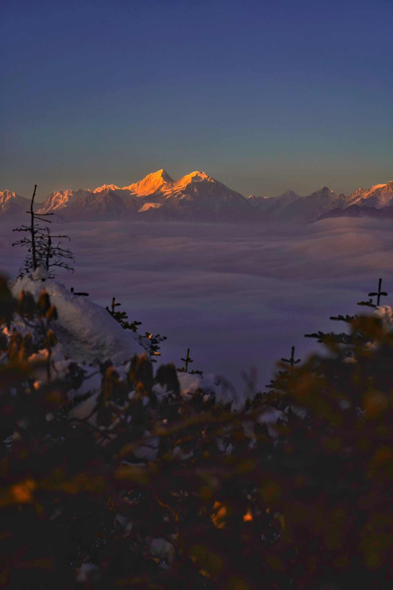 白天追着云海跑,傍晚看着日照金山发呆,凌晨在零度的寒风中等待,只为那一刻破晓的橘色浪漫。站在这里,才明白什么是“远赴人间惊鸿宴”。