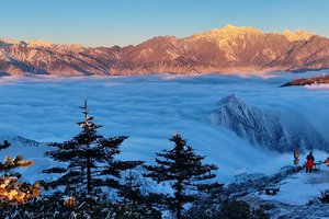 相比牛背山的商业化,这里保留了更多野趣。从海子坪出发,穿过渐渐泛绿的杜鹃林,3-4小时徒步登顶。夜晚的星空像打翻的碎钻,清晨的云海如巨浪翻涌。
