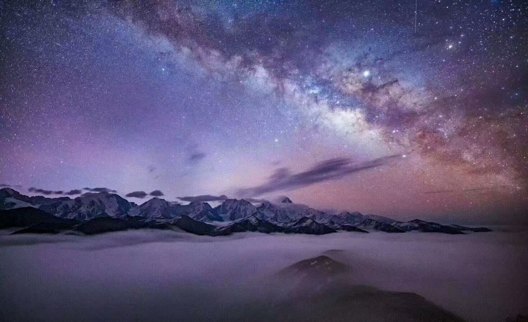 贡嘎雪山、高山雪景、星空、云海